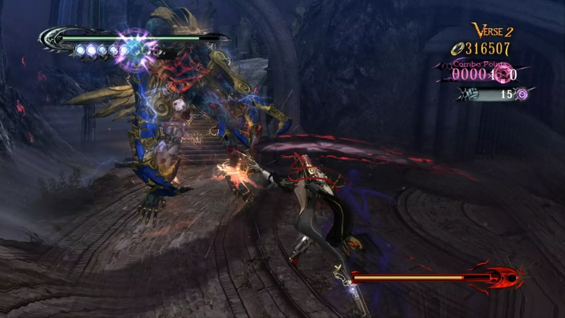 Bayonetta es una bruja que patea traseros y causa estragos, y disparará, azotará, cortará y quemará ángeles mientras descubre la verdad sobre su propio pasado. Sus armas y movimientos son elegantes y exagerados, pero también puede esquivar ataques para ralentizar el tiempo e infligir ataques de tortura a sus enemigos. Esta es la precuela del juego Bayonetta™ 2, y es tan atrevida, destructiva y épica como cabría esperar. Bayonetta es la descendencia profana a la moda y astuta de una Bruja Umbra y un Sabio Lumen, y ha perdido la memoria después de estar dormida en el fondo de un lago durante 500 años. Usa Wicked Weaves para convocar demonios infernales, esquiva los peligrosos ataques de los enemigos para ralentizar el tiempo y castiga a los ángeles con dispositivos letales. Incluso puedes vestir a Bayonetta con cuatro disfraces temáticos de Nintendo: la princesa Peach, la princesa Daisy, Link y Samus Aran.
