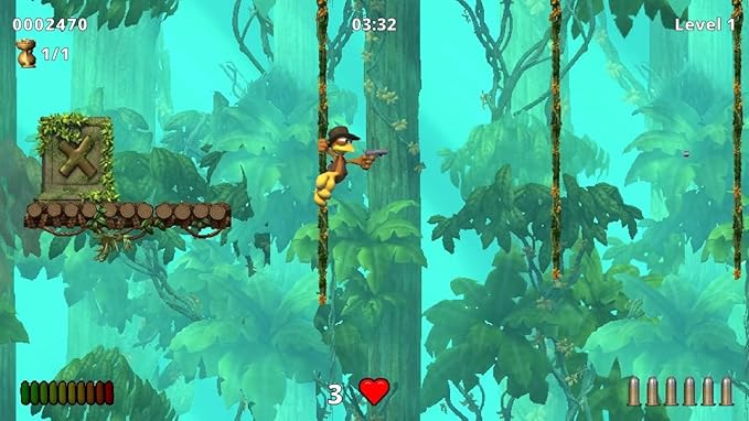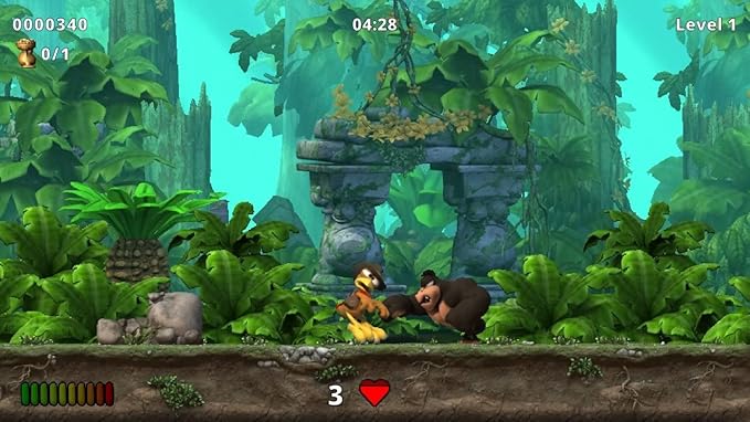 En la densidad de la selva, Crazy Chicken va en la búsqueda de un antiguo y legendario complejo de templos perdido, donde se dice que se esconde un tesoro de valor incalculable… Enfrentarse a las trampas ocultas, a los gorilas malhumorados, a los feroces cocodrilos, a los chamanes selváticos, a los espíritus del bosque y a los alienígenas perdidos exigirá unas agallas, una fuerza física y una destreza dignas de un verdadero cazatesoros. Saltando, balanceándose, pateando, boxeando y, a veces, hasta disparando, Crazy Chicken avanza a toda prisa por las profundidades de la selva para encontrar el mítico tesoro: ¡el amuleto del QUÉSA!