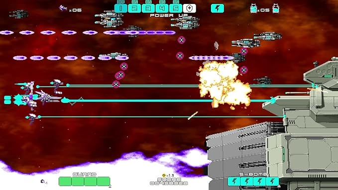 Con tres niveles de dificultad (fácil, normal y difícil), asistencia anticolisión, modos de juego desbloqueables y la posibilidad de repetir las fases con diferentes configuraciones, DRAINUS tiene todo lo buscas y más de un buen side-scroller de disparos.