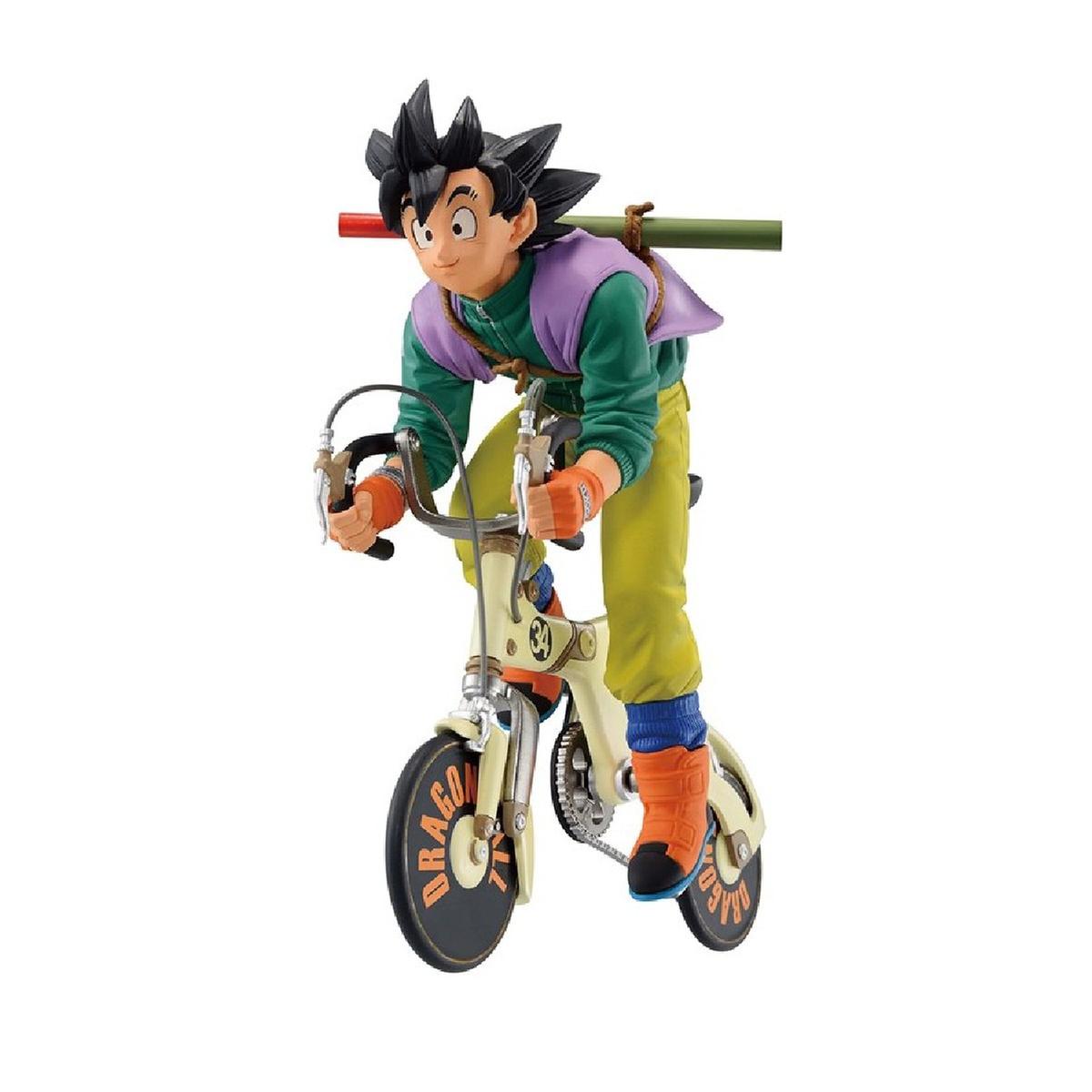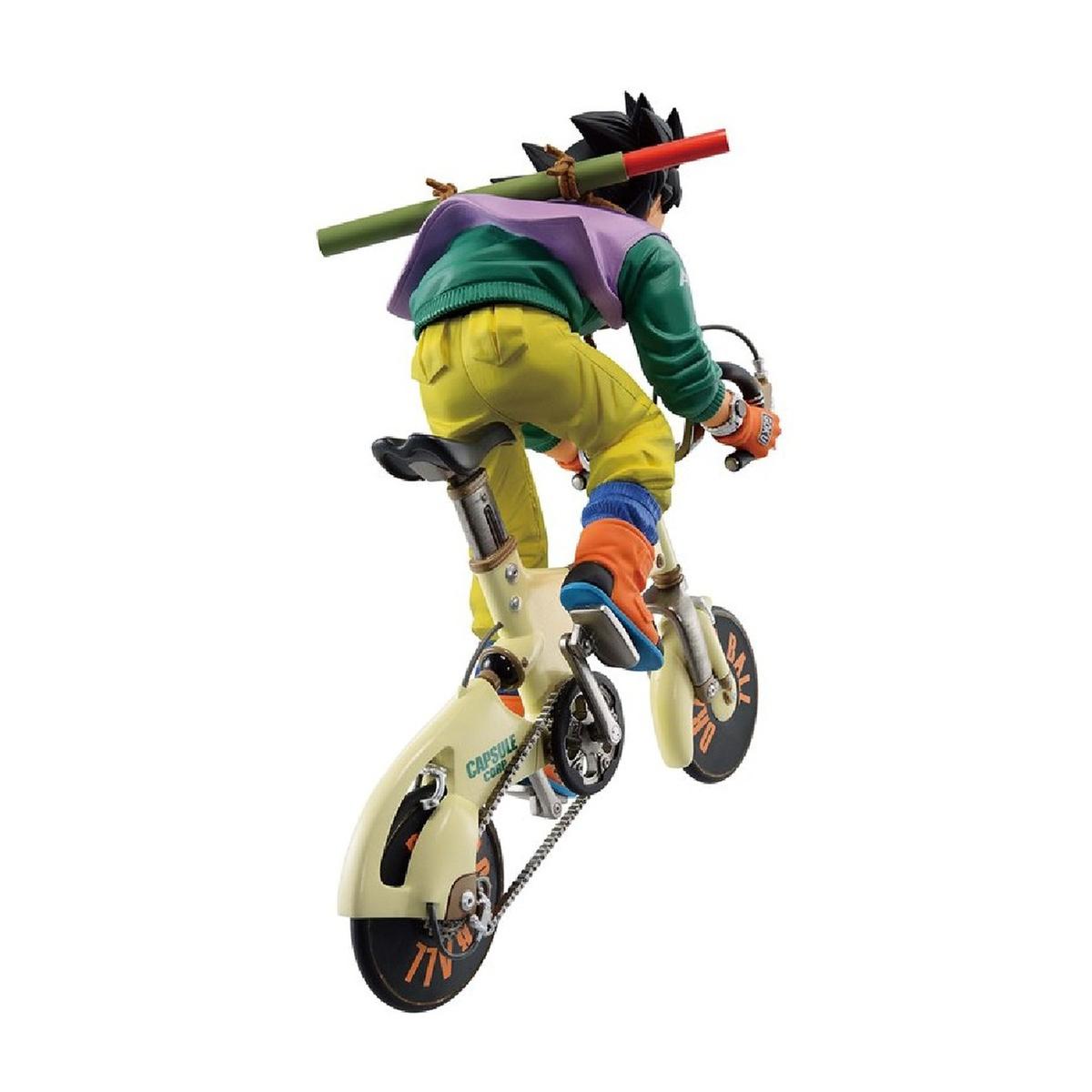 Esta pieza única captura a Goku en una escena cotidiana, montando una bicicleta de Capsule Corp, evocando la icónica portada del volumen 34 del manga.