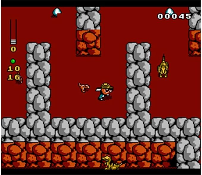 Jurassic Park (8-bit NES), Jurassic Park (8-bit Game Boy), Jurassic Park (16-bit SNES), Jurassic Park (16-bit Genesis),Jurassic Park Part 2: The Chaos Continues (SNES), Jurassic Park 2 (8-bit Game Boy), Jurassic Park: Rampage Edition (Genesis).