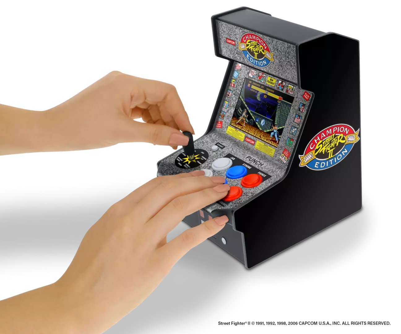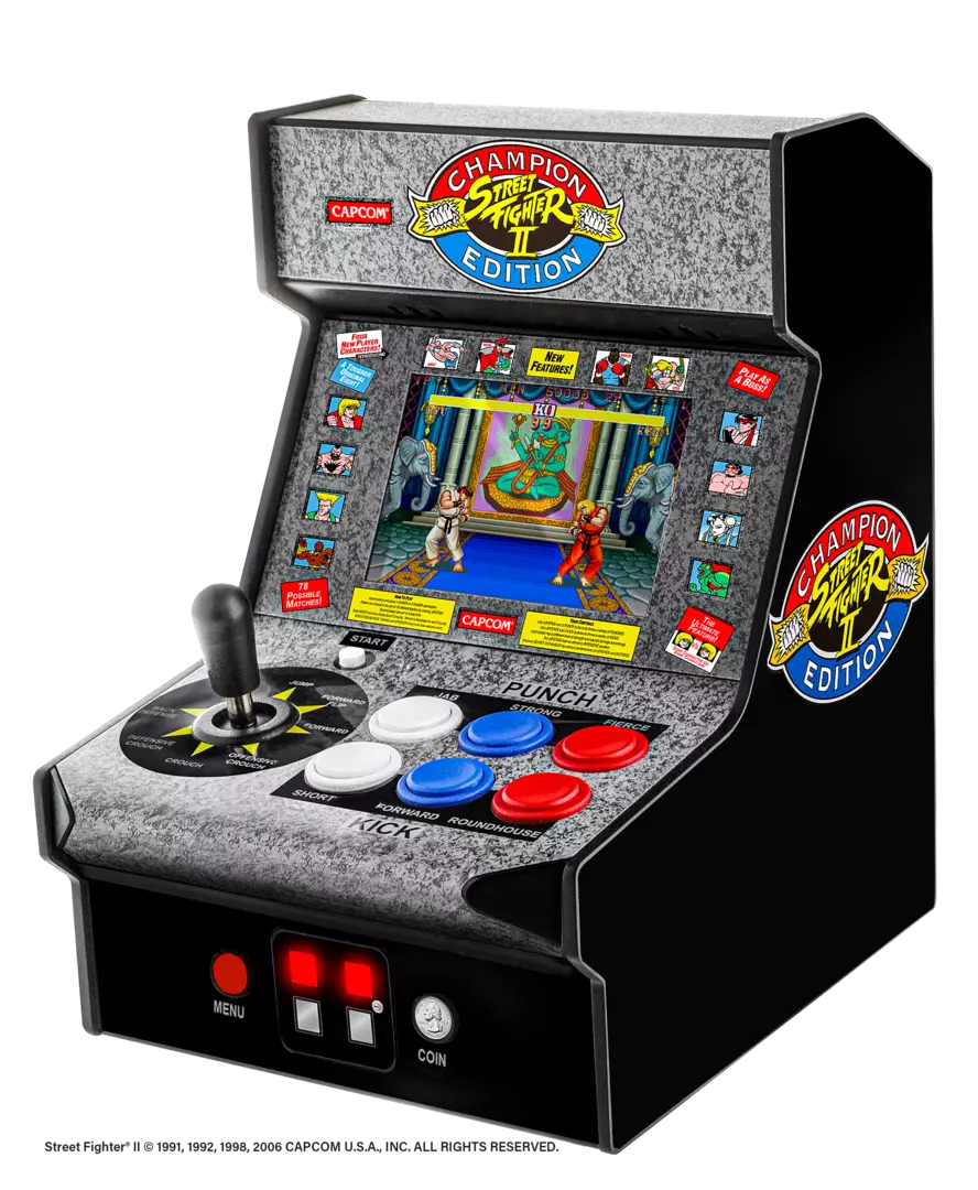 El legendario árcade clásico Street Fighter II Champion Edition fue lanzado en 1992 y presentaba un juego revolucionario, que incluía combinaciones de botones múltiples y un enfoque adictivo de enfrentamiento directo. Regresando por primera vez como una réplica de tamaño mini completamente jugable, es imprescindible para los fanáticos casuales y coleccionistas de la legendaria franquicia de juegos de lucha.