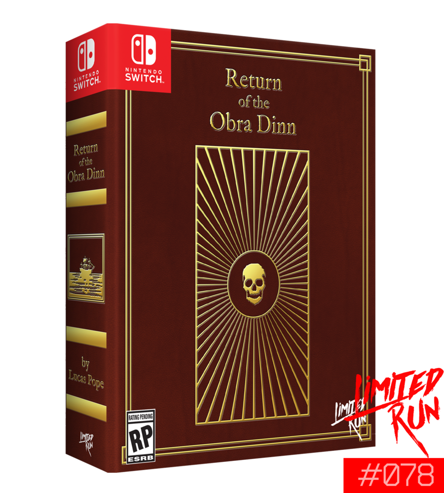 La Edición de Coleccionista de Return of the Obra Dinn , producida por Limited Run Games en cantidades limitad apara Nintendo Switch (1000 unidades), viene en una caja de cartón de edición de coleccionista (con una versión con funda para Nintendo Switch). Su contenido incluye: * La versión física de Return of the Obra Dinn para Nintendo Switch.