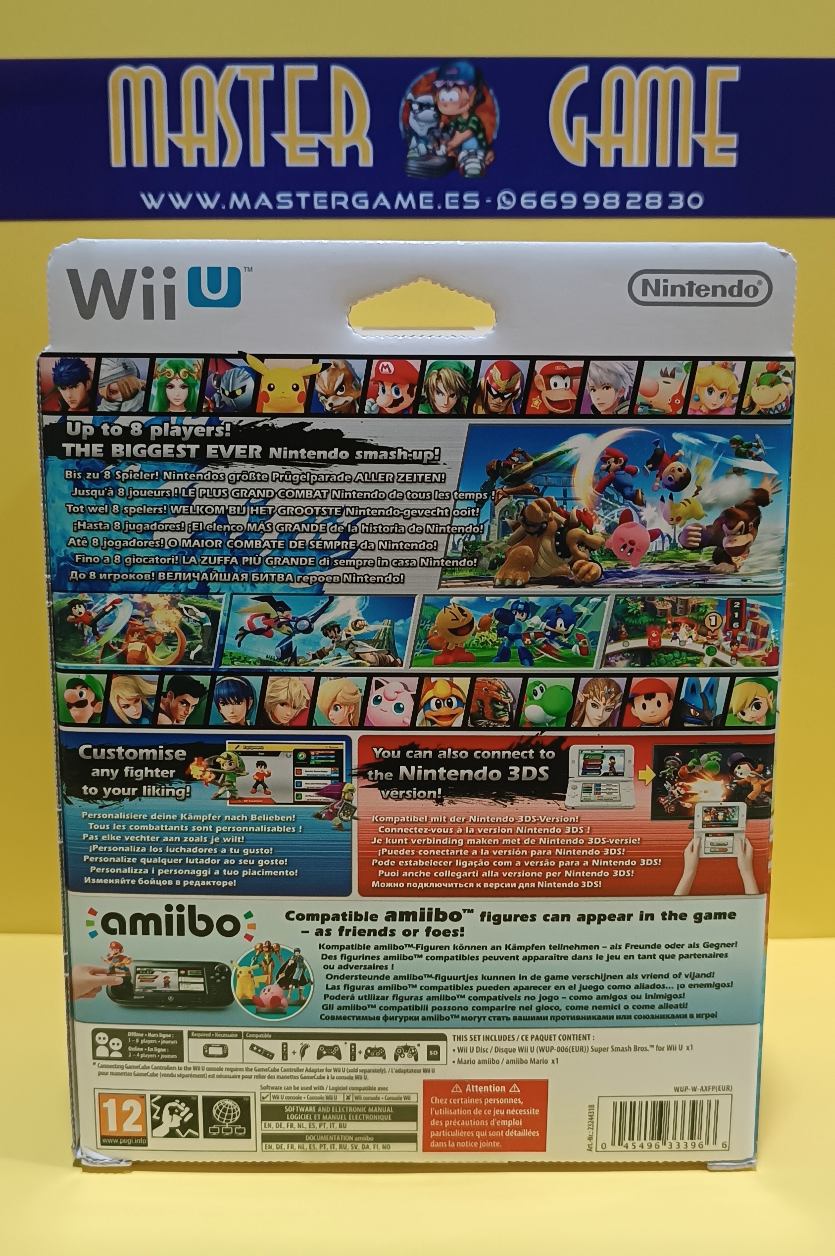 Mejora la experiencia Super Smash Bros. for Wii U aún más con amiibo, una nueva gama de figuras interactivas que estarán disponibles al mismo tiempo que el juego. En Super Smash Bros. for Wii U puedes transferir los datos de tu amiibo de modo que aparezca en el juego y luche en tu bando. Mientras tu amiibo juega, desarrolla sus atributos y habilidades propias, haciéndose más fuerte y aprendiendo nuevos movimientos. ¡E incluso le puedes dar un toque personal personalizando sus ataques especiales!